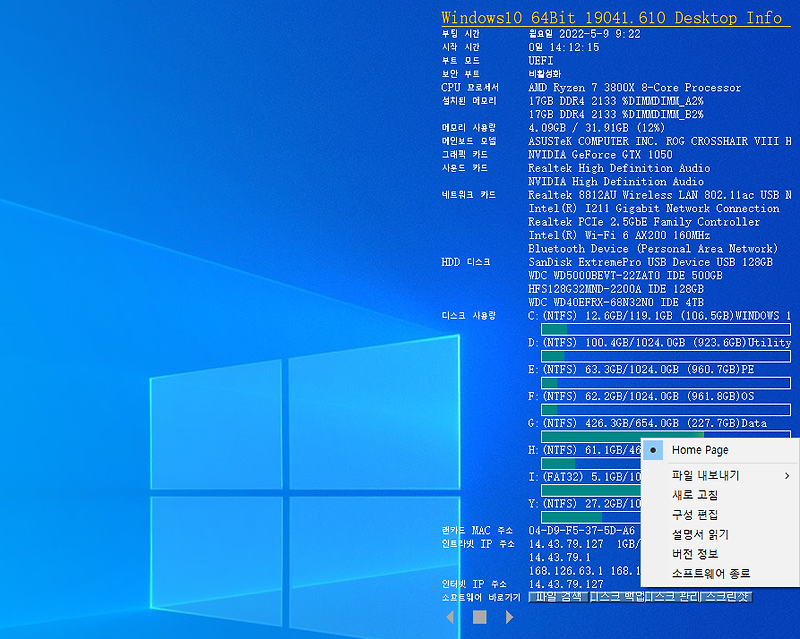 바탕화면에 하드웨어 정보 표시 (Desktopinfo)