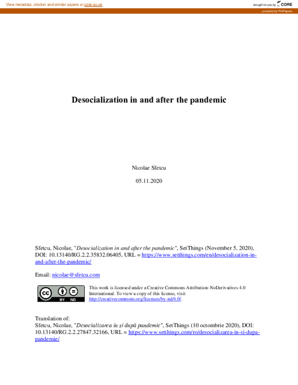 Desocialization in and after the pandemic : Nicolae Sfetcu : Free ...