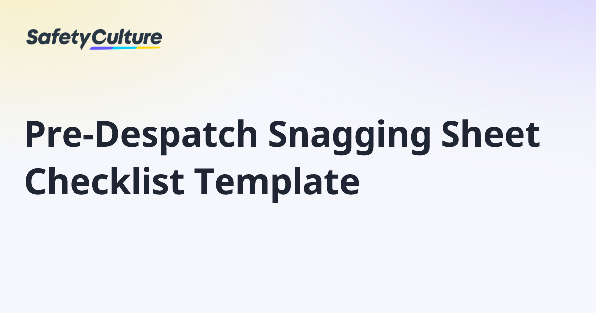 Pre-Despatch Snagging Sheet Checklist Template | Free Template