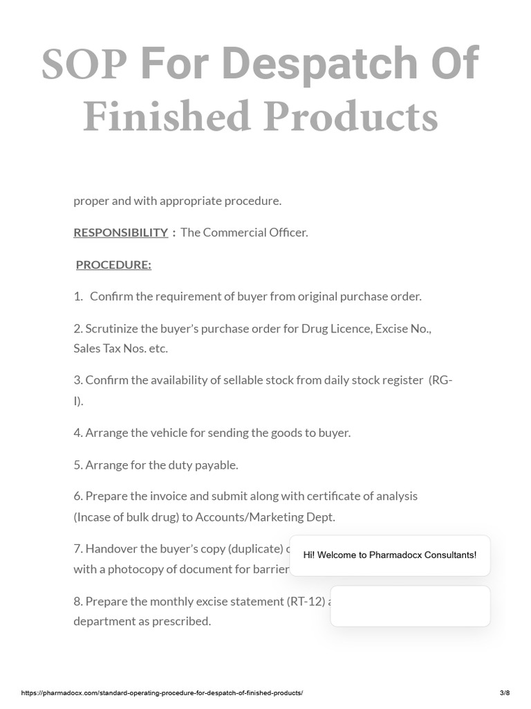Finished Goods Dispatch Checklist at Alexandra Hellyer blog