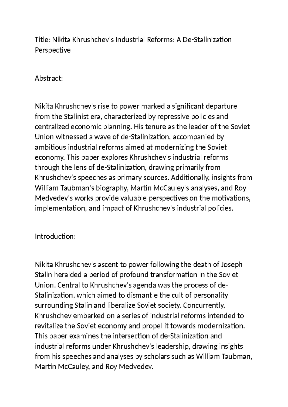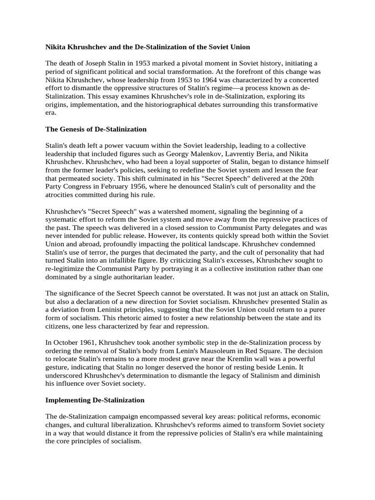 Khrushchev's De-Stalinization Era | PDF | Nikita Khrushchev | Joseph Stalin