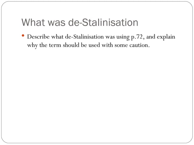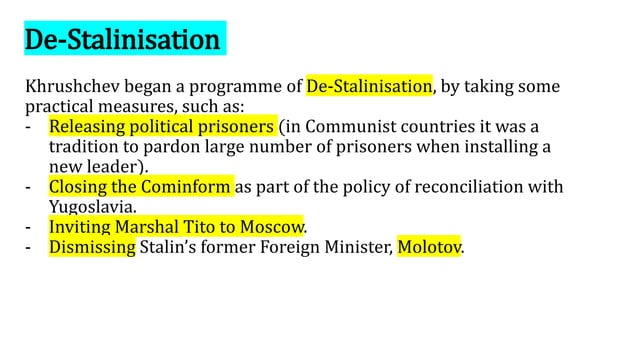 De-Stalinization - Khrushchev and De-Stalinization De-Stalinization ...
