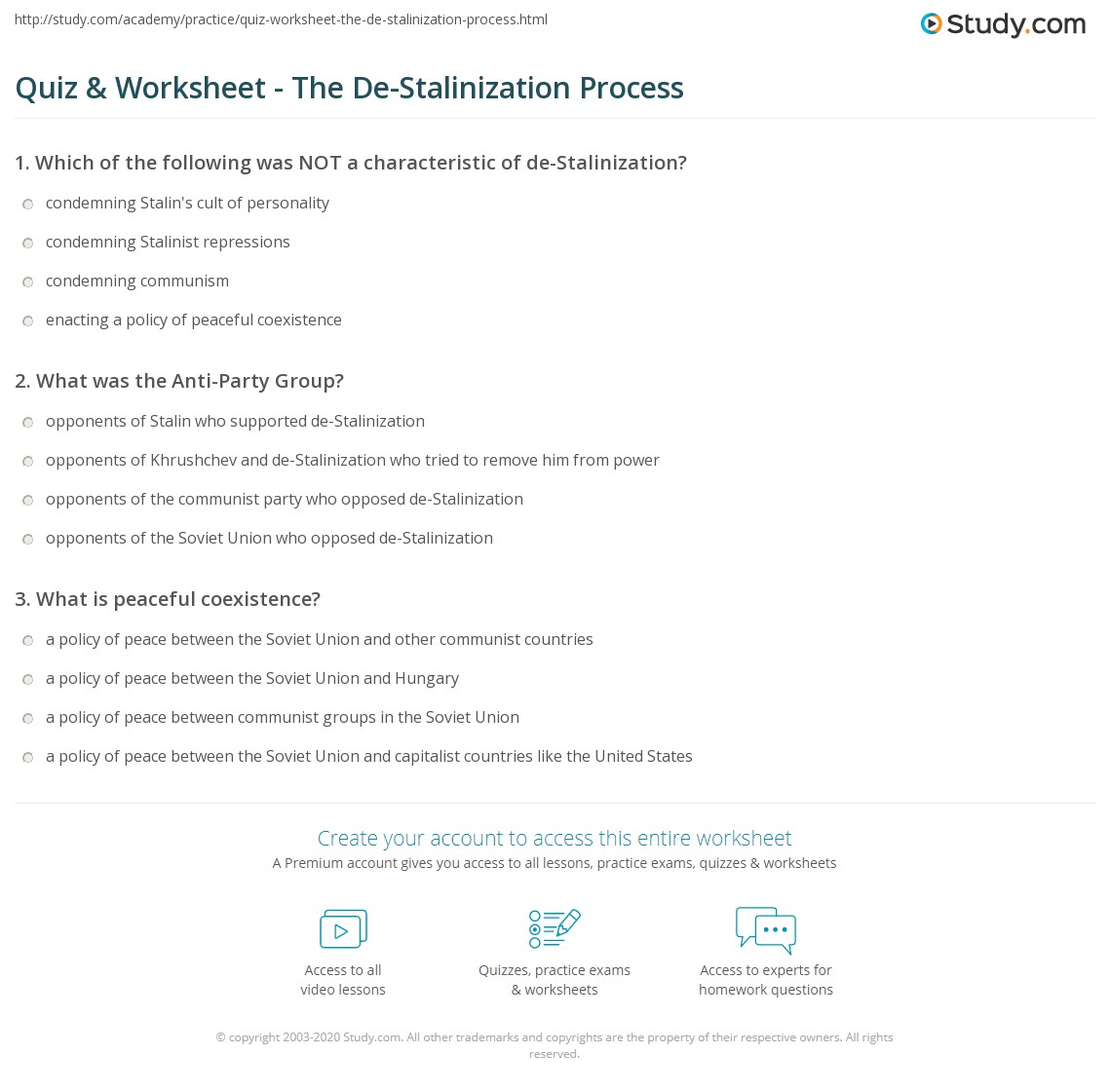 Quiz & Worksheet - The De-Stalinization Process | Study.com