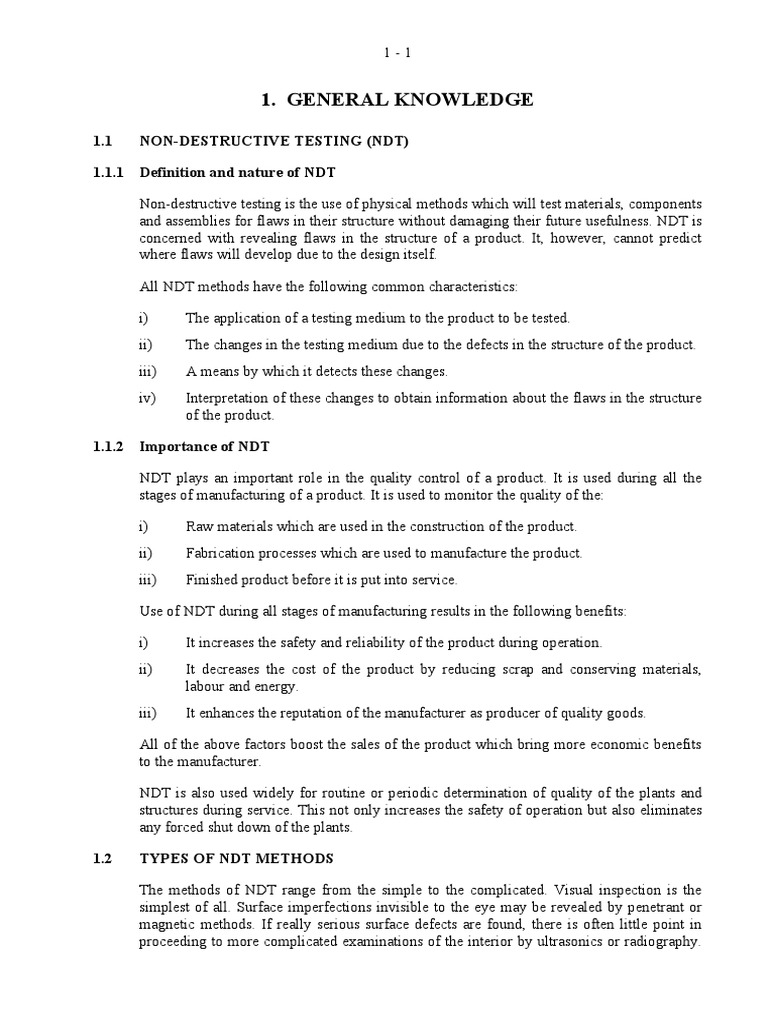 General Knowledge: 1.1 Non-Destructive Testing (NDT) 1.1.1 Definition ...