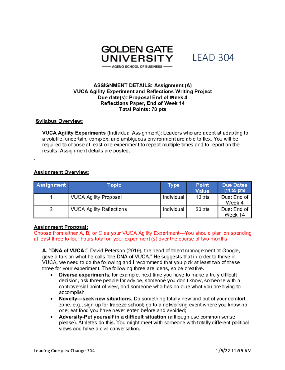 Assignment (A) Assignment Details SP 2022 - Leading Complex Change 304 ...
