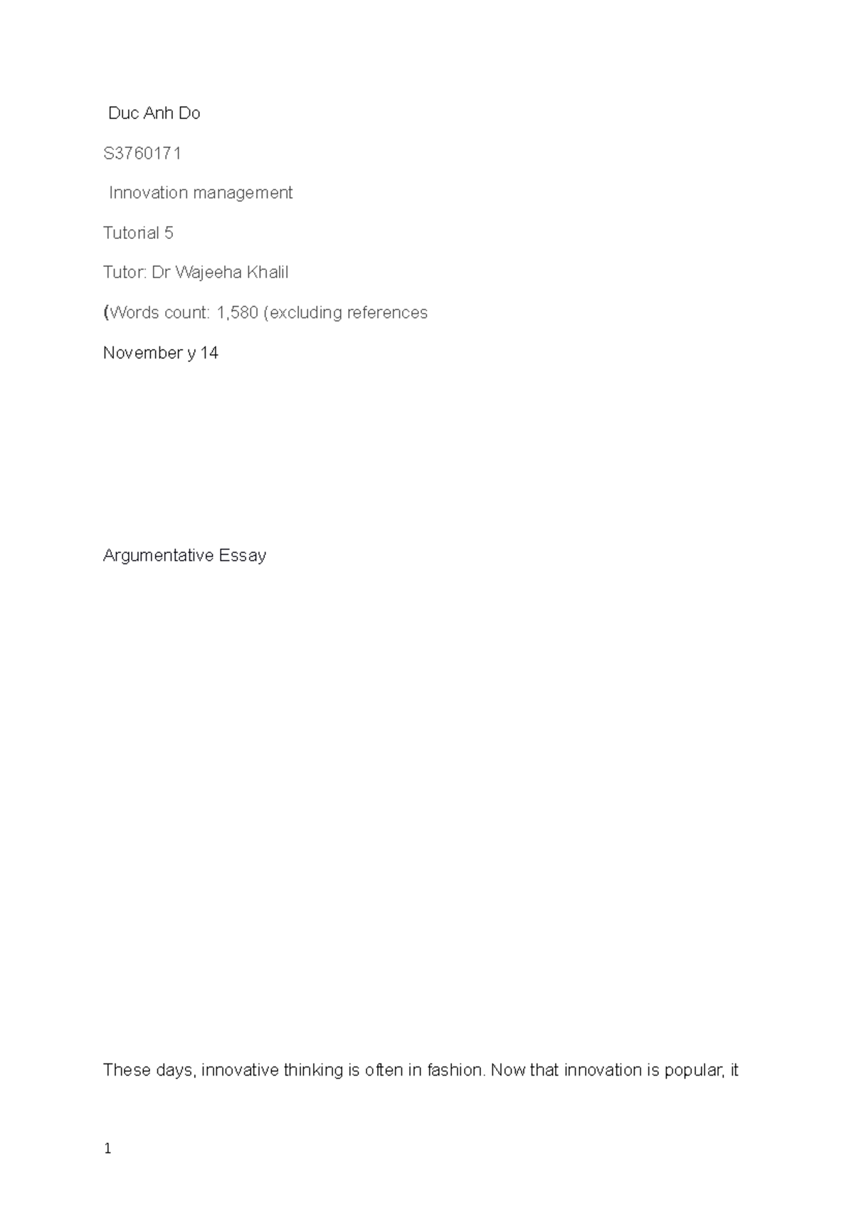 I - assignment detail - Duc Anh Do S Innovation management Tutorial 5 ...