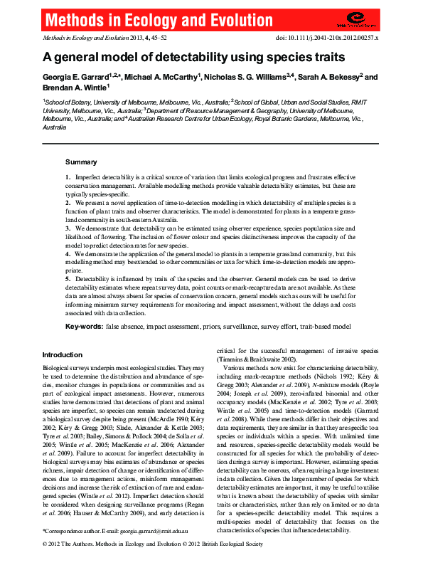 (PDF) A general model of detectability using species traits