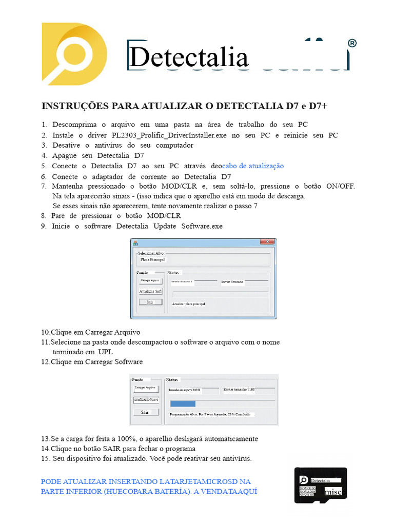Manual de Atualização Detectalia D7 e D7+ | PDF