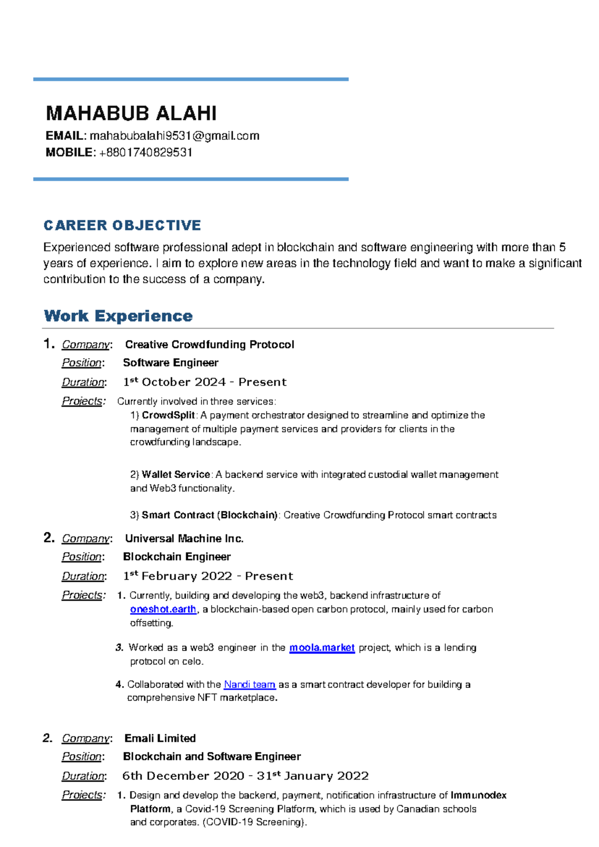 MAHABUB ALAHI CV - Software Engineer & Blockchain Specialist - Studocu
