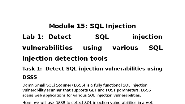 Module 15: SQL Injection Lab 1 - Detecting Vulnerabilities with Tools ...