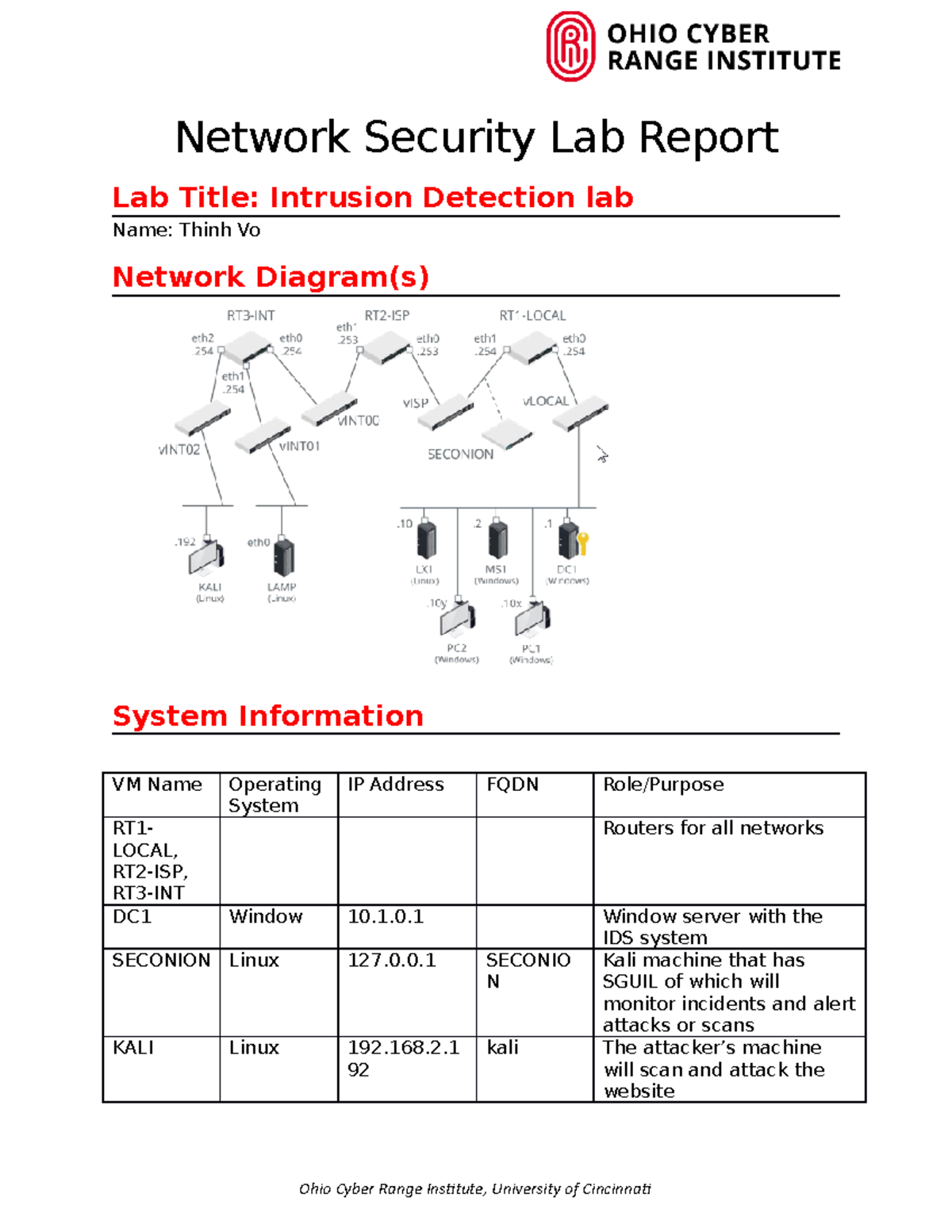 Intrusion Detection Lab Report - Network Security Lab (CS101) - Studocu