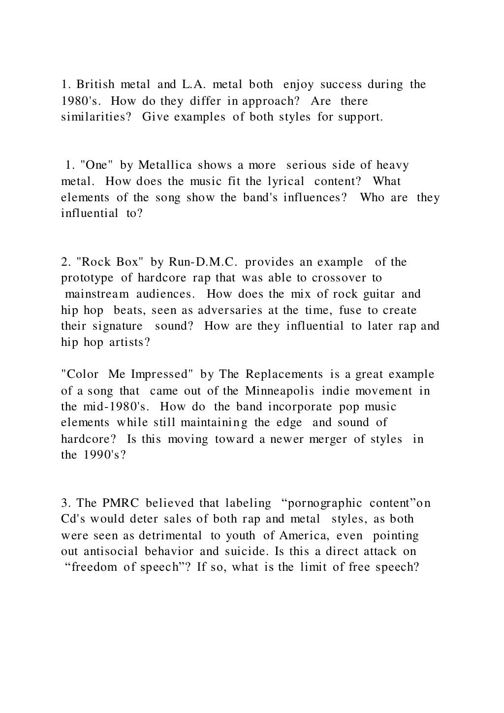 1. British metal and L.A. metal both enjoy success during the 1980 | DOCX