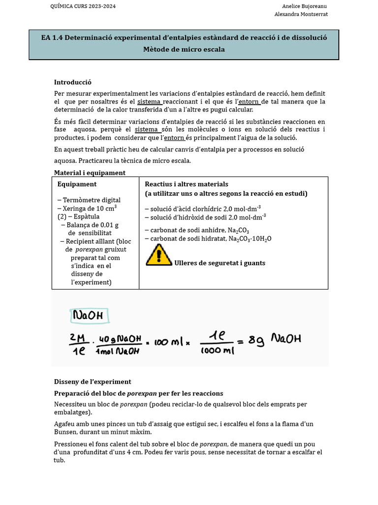 Pràctica Determinació Entalpia - Anelice, Alexandra | PDF