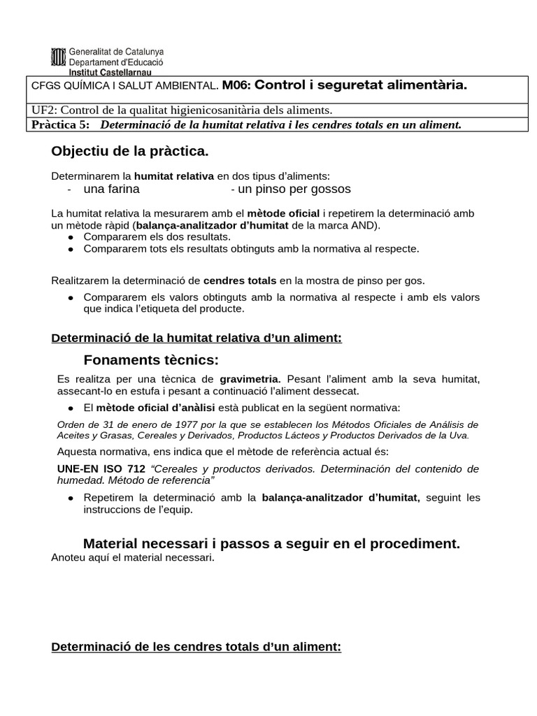P5 Determinació Humitat Cendres | PDF