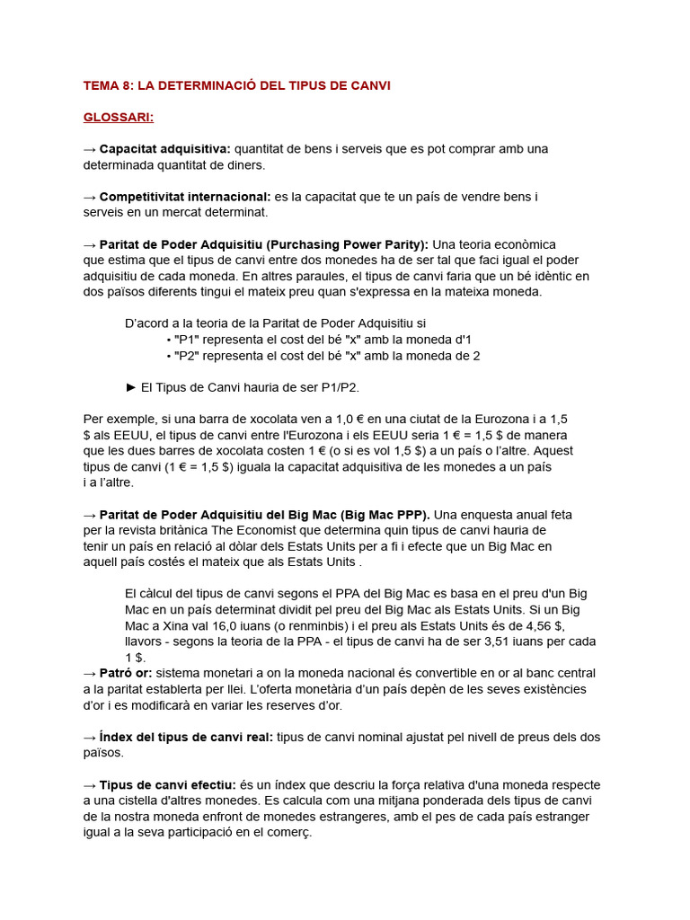 Tema 8 - La Determinació Del Tipus de Canvi | PDF