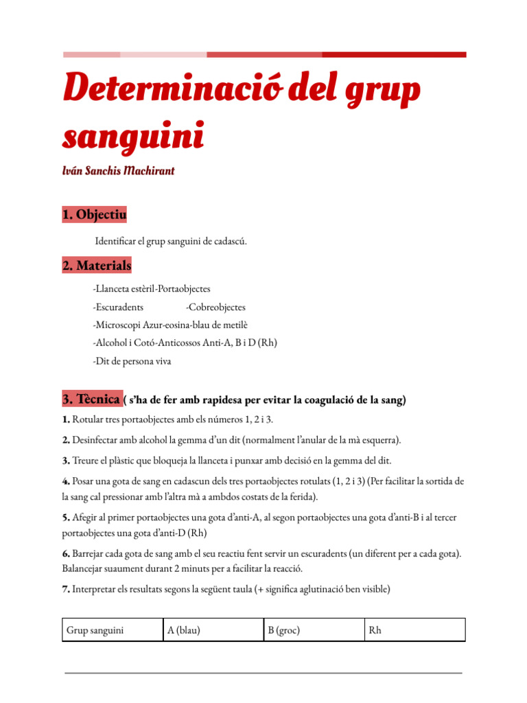 Determinació Del Grup Sanguini | PDF