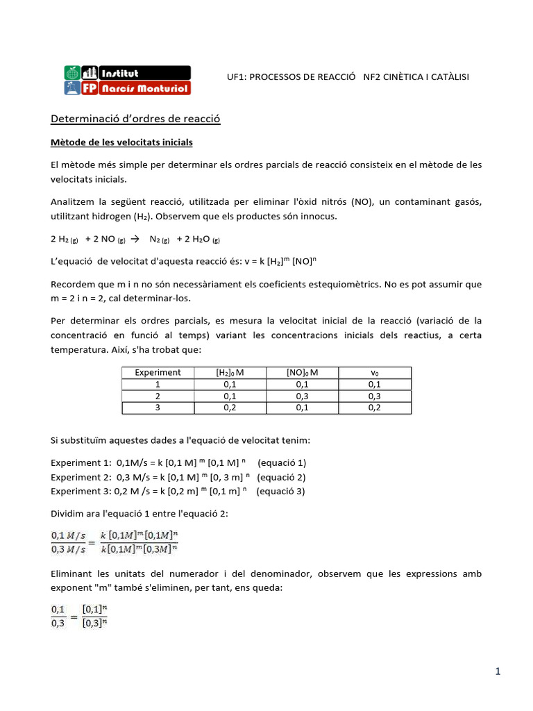 Determinació D'ordres de Reacció I Arrhenius | PDF