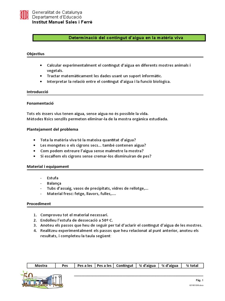 Determinació Contingut Daigua | PDF