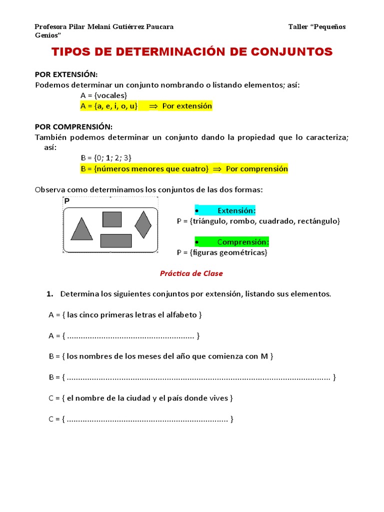 Ejercicios De Determinación De Conjuntos Por Extensión Y Comprensión ...