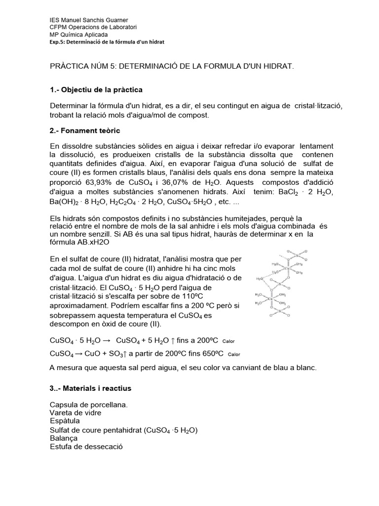 PRÁCTICA #5 Determinació Formula Dun Hidrat | PDF