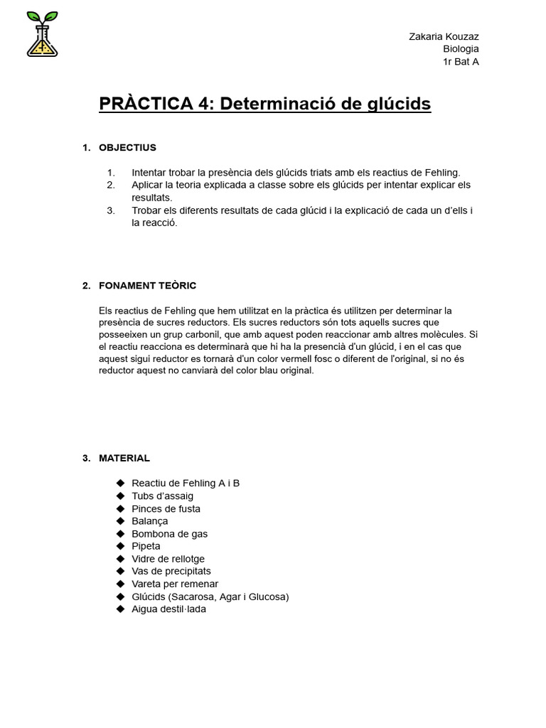 PRÀCTICA 4 - Determinació de Glúcids | PDF
