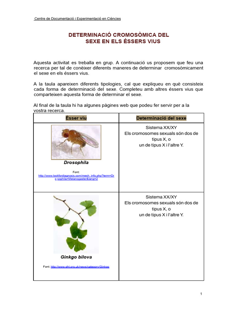 Determinació Cromosòmica Del Sexe | PDF