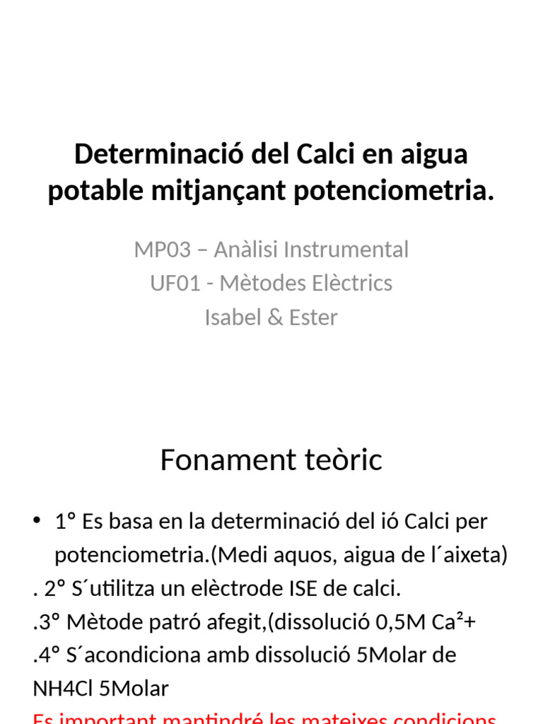 Determinació Del Calci en Aigua Potable Mitjançant Potenciometria. | PDF