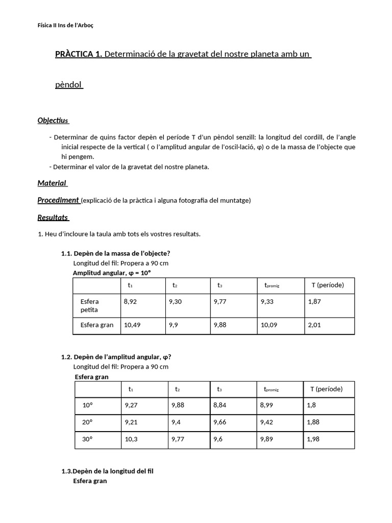 PRÀCTICA 1. Determinació de La Gravetat Del Nostre Planeta Amb Un ...