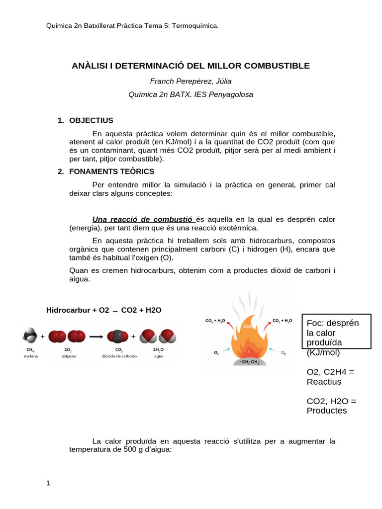 Anàlisi I Determinació Del Millor Combustible Júlia Franch | PDF