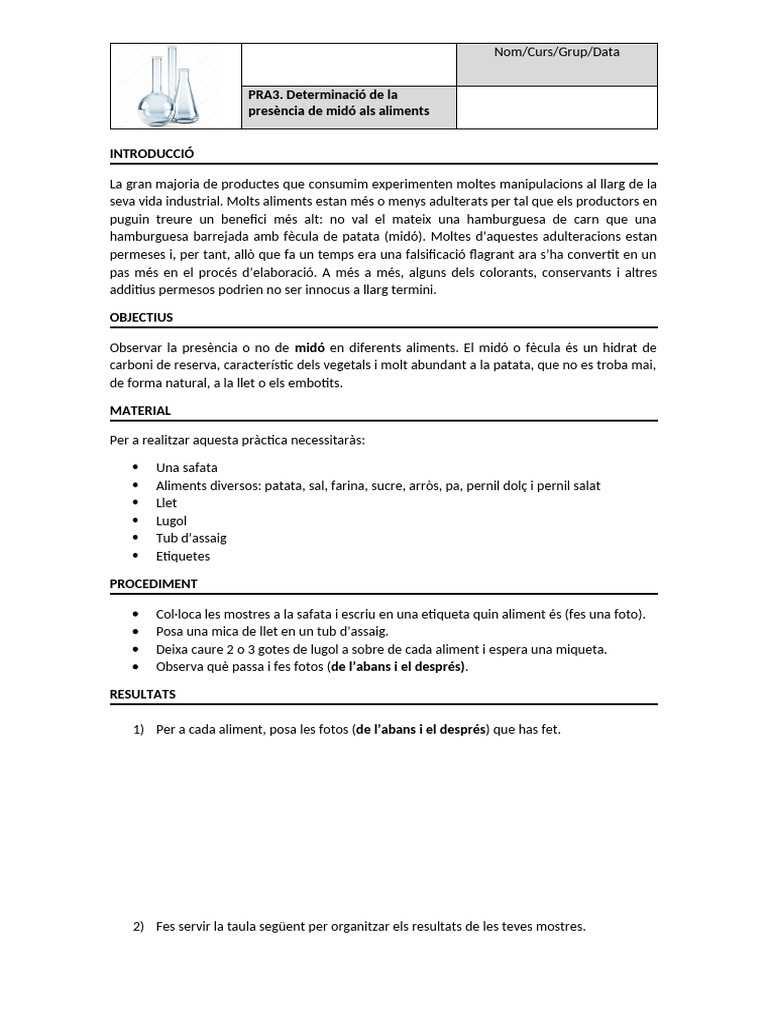 Practica3. Determinació Del Midó | PDF