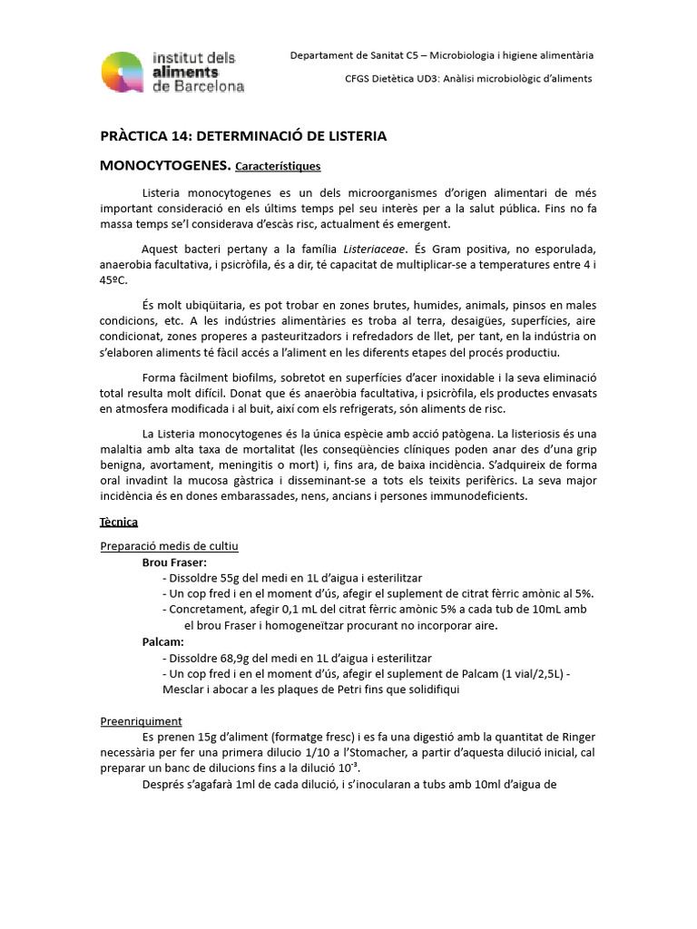 PRÀCTICA 14 - Determinació de Listeria Monocytogenes | PDF
