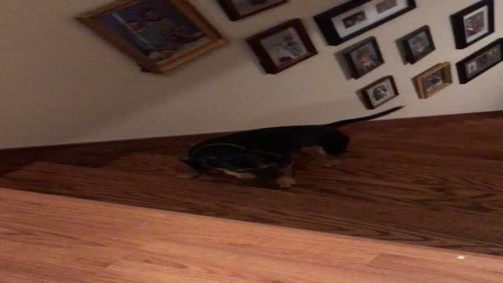 "Brave Pup Overcomes Fear, Conquers Stairs with Determination"