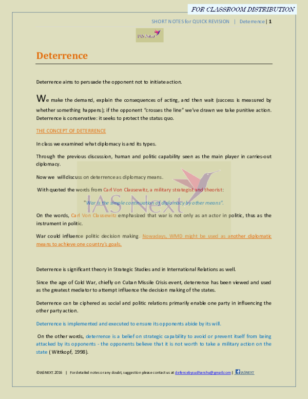 Review of Previous LectureDeterrence Deterrence concept and definition