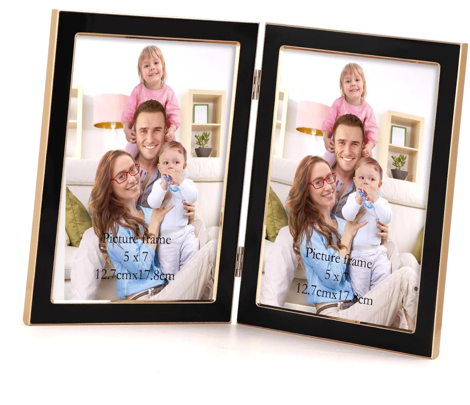 SKYSONIC 5x7 Dual Photo Frame with Tempered Glass, 5 by 7 Hinged Metal ...