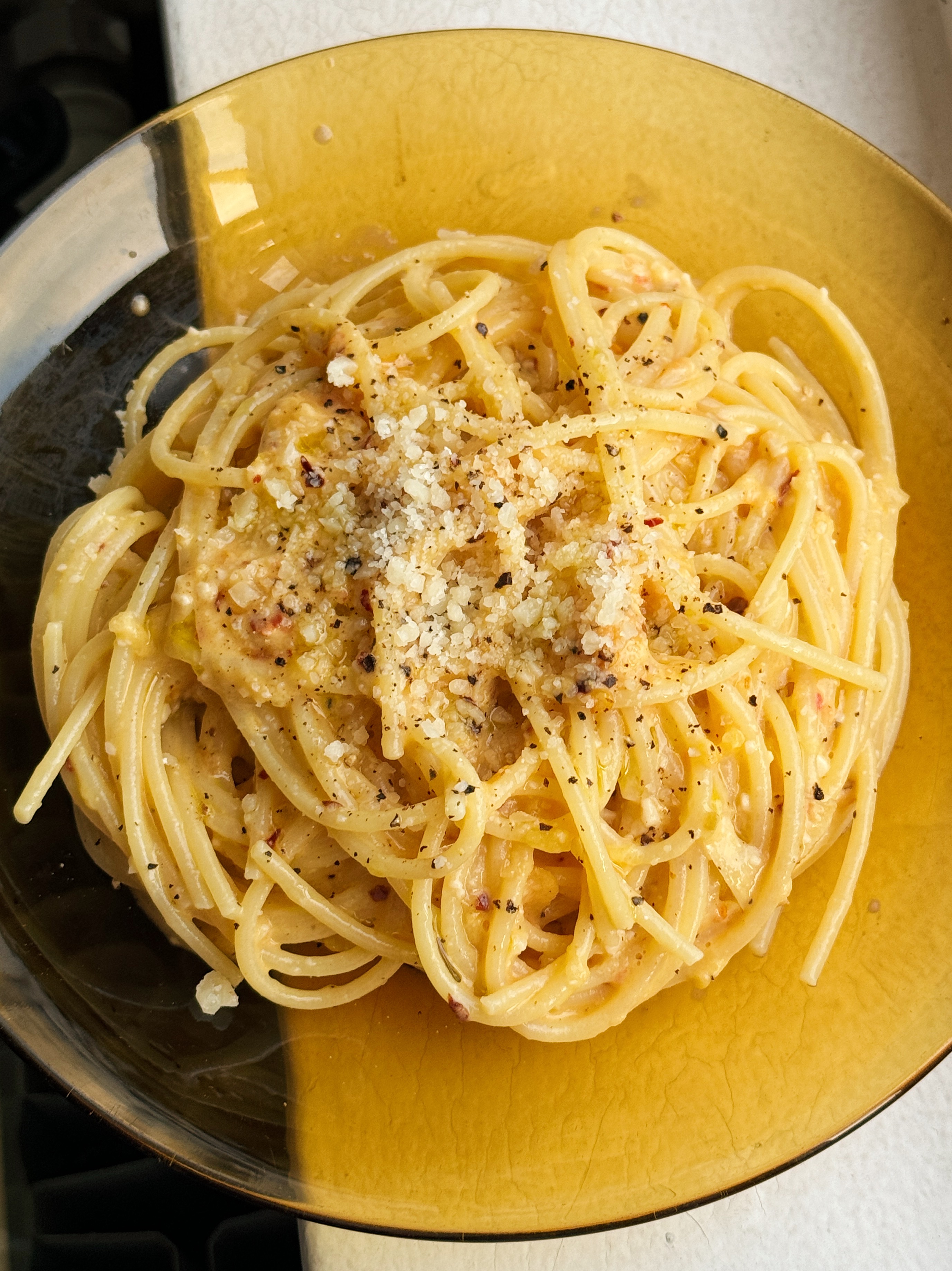 grated tomato spaghetti carbonara—darn good, devan grimsrud