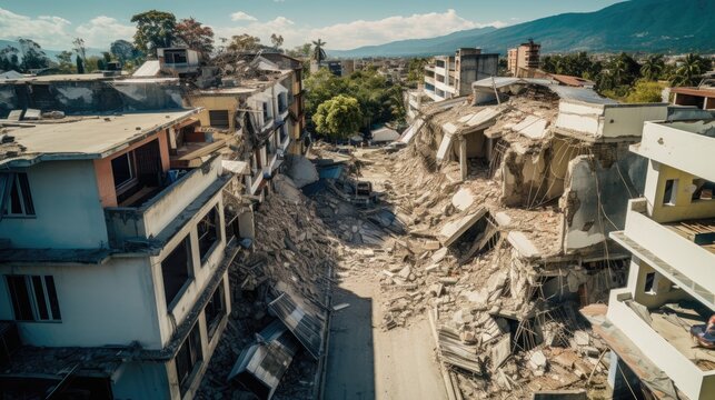 An Entire City Square Devastated by an Earthquake, Destroying Buildings ...