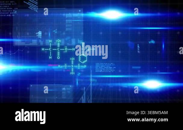Animation of data processing on screen and molecules over computer ...