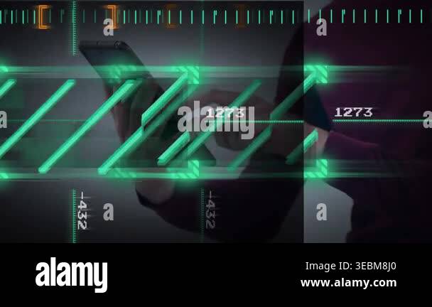Animation of green line and statistics processing over grid. Global ...
