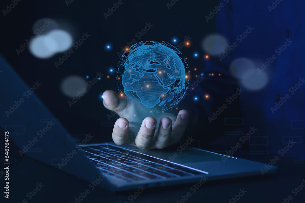 Businessman showing progress, data, business plan, software, work chart ...