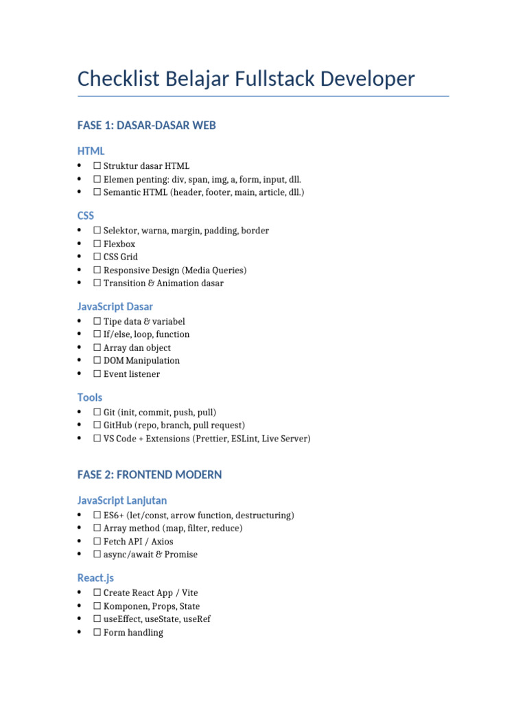 Junior Web Developer Checklist 1 - Welcome! This is a comprehensive ...