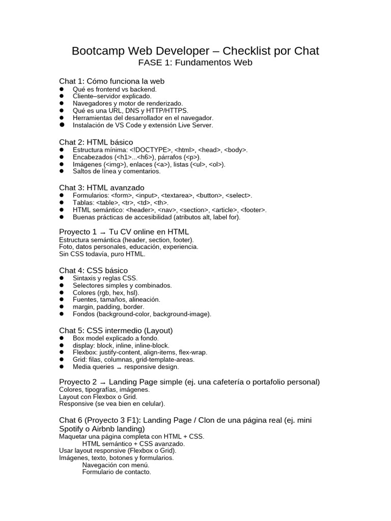 Bootcamp Web Developer - Checklist Por Chat | PDF | Redes | Internet y web