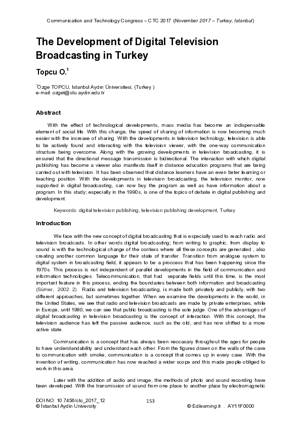 (PDF) The Development of Digital Television Broadcasting in Turkey