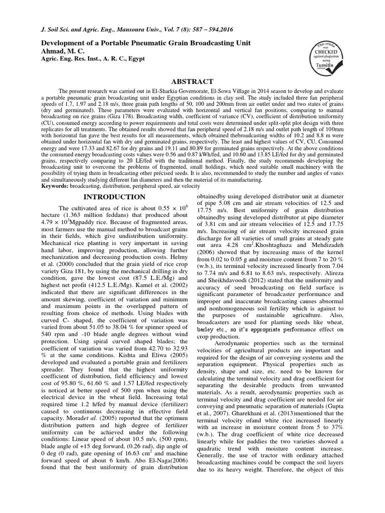 Development of A Portable Pneumatic Grain Broadcasting Unit: Ahmad, M ...