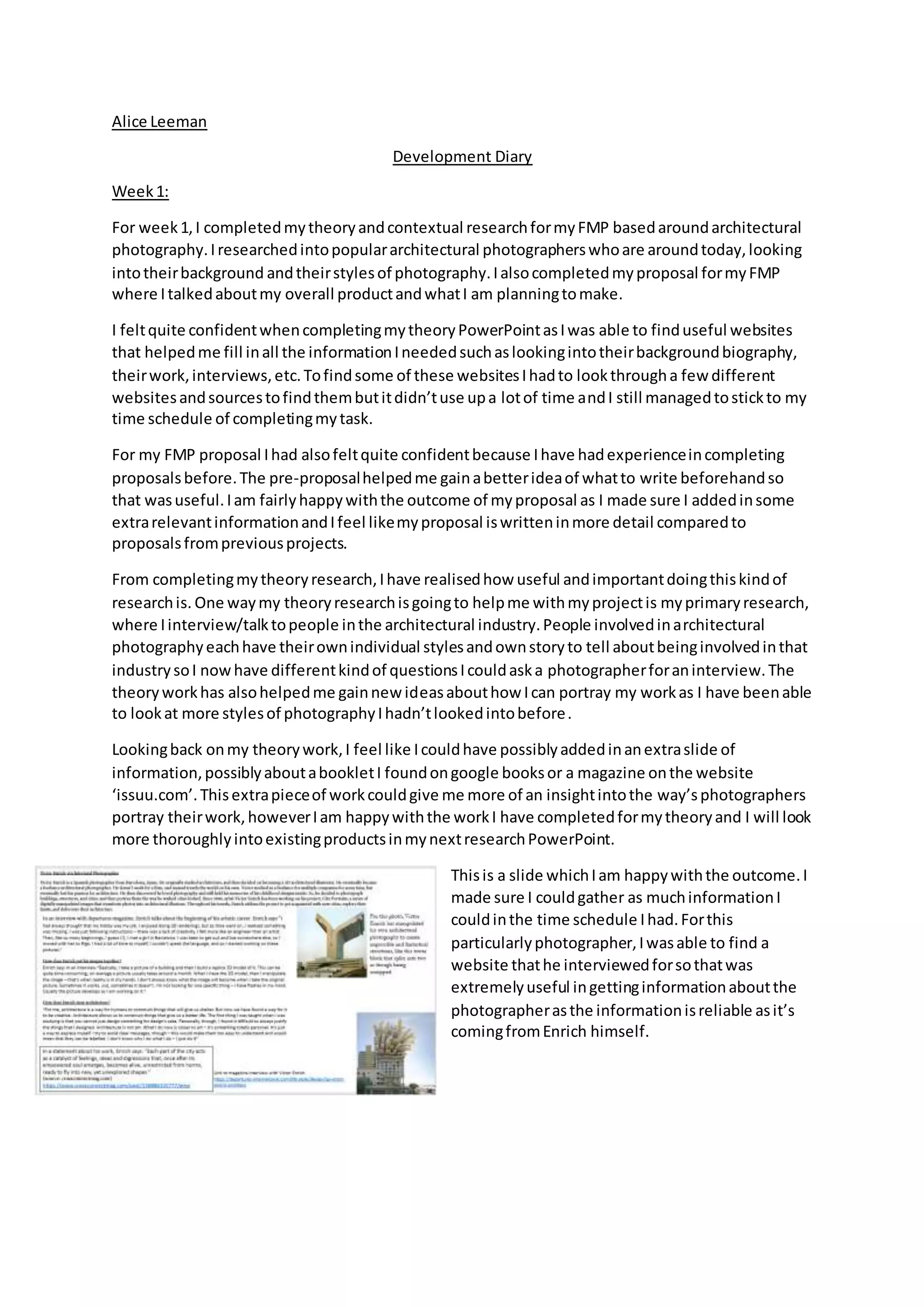 Development Diary template AutoRecovered .docx - Development Diary Week ...