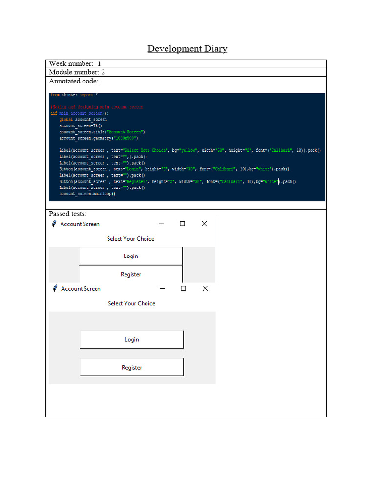 Development Diary: Weekly Test Results | PDF | Technology & Engineering