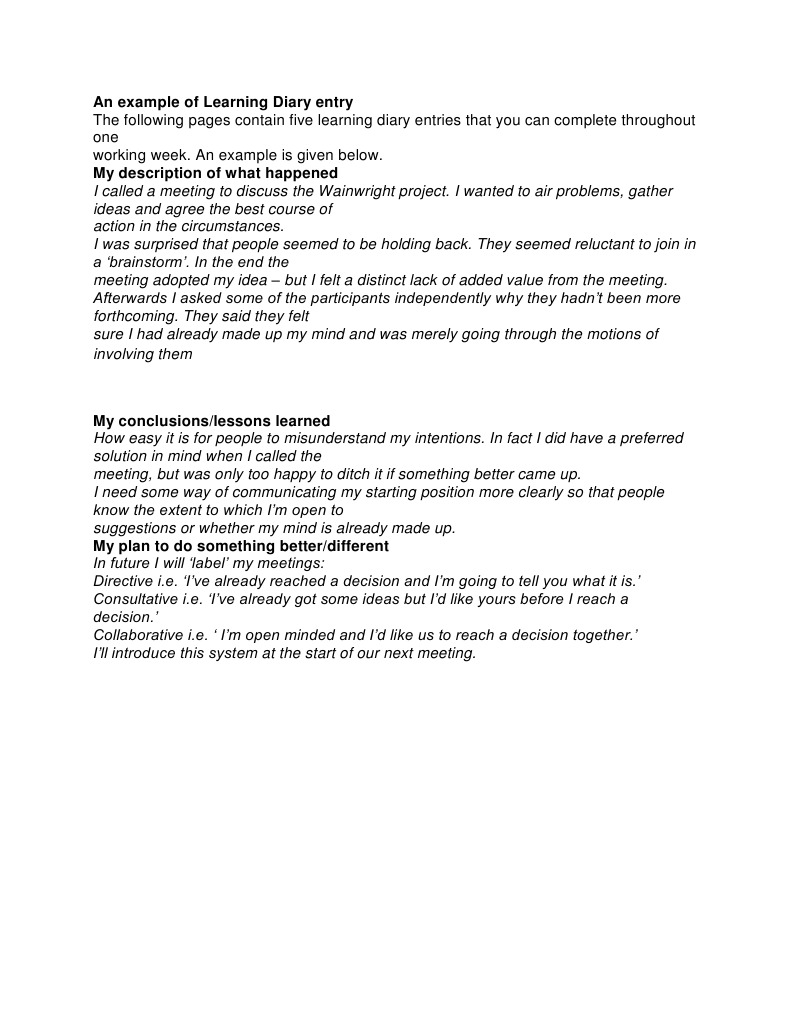 Learning Diary Entry Example | PDF