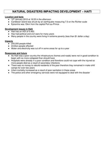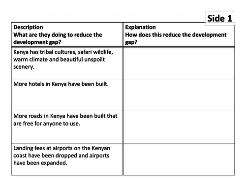 Development Gap case study revision sheets - AQA, OCR and EdExcel with ...