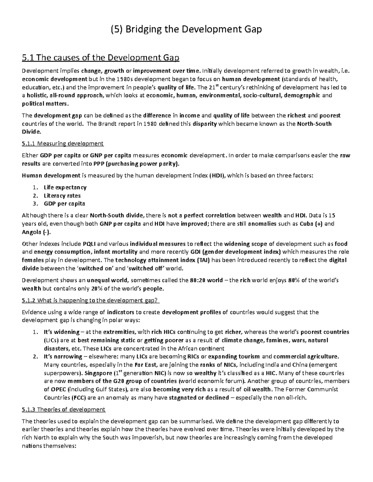 Development Gap (indicators, causes and consequences) Revision Sheet ...