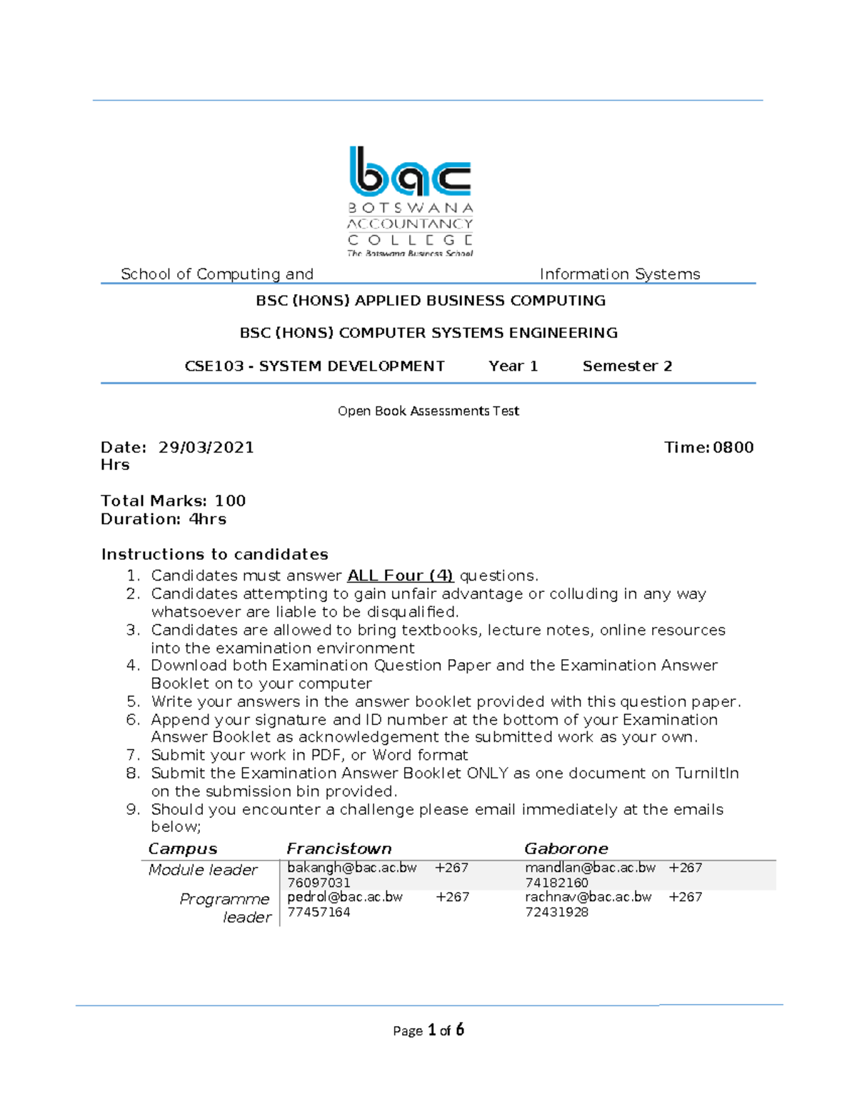CSE103 System Development Year 1 Semester 2 Open Book Test - Studocu