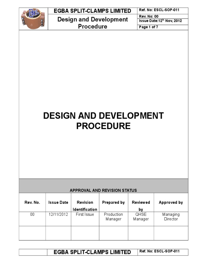 ESCL-SOP-011, Design and Development Procedure | PDF | Verification And ...